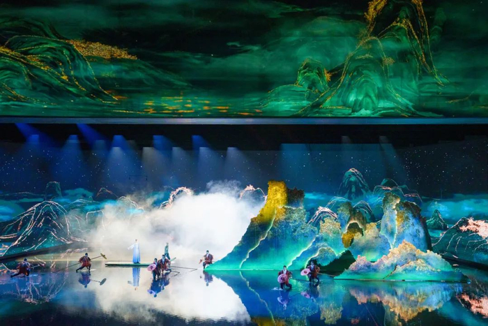 ▸ 10000m³数控水舞台,机械联动无缝切换干湿秘境:九曲溪秒变丹崖飞瀑,激光水幕实时书写朱子哲思。