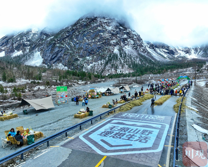 在毕棚沟启动现场,25位“雪山先锋”领航人与各界代表共同参与发车仪式。自驾车队沿公路启程,沿途雪山巍峨、杜鹃盛放,红石滩与野花相映成趣,构成流动的自然画卷。