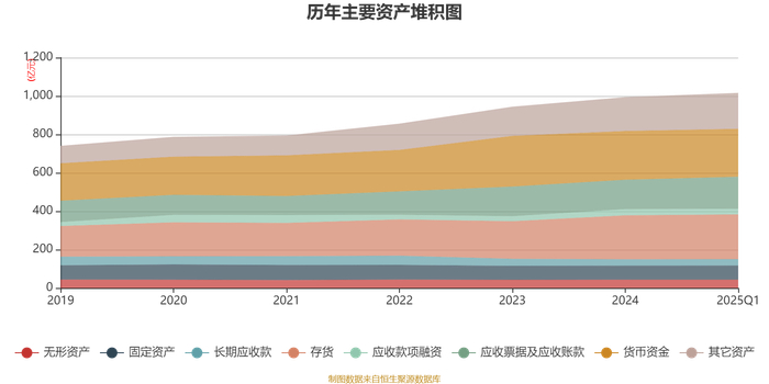 资产重大变化方面,截至2025年一季度末,公司交易性金融资产合计较上年末增加772.07%,占公司总资产比重上升1.52个百分点;货币资金较上年末减少2%,占公司总资产比重下降1.05个百分点;应收票据及应收账款较上年末增加9.02%,占公司总资产比重上升1.03个百分点;预付款项较上年末减少30.08%,占公司总资产比重下降0.56个百分点。