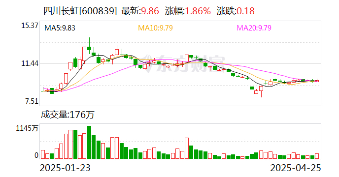 四川长虹:2025年一季度净利润3.45亿元 同比增长96.68%