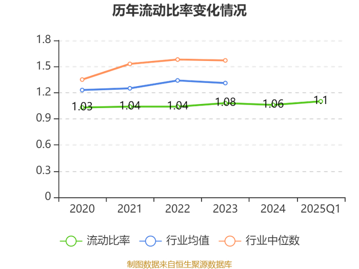 2025年第一季度,公司流动比率为1.1,速动比率为0.76。