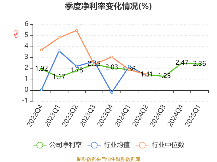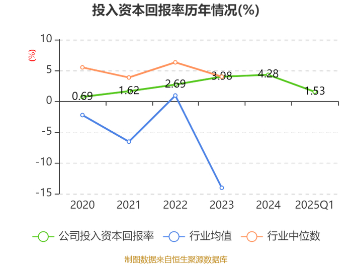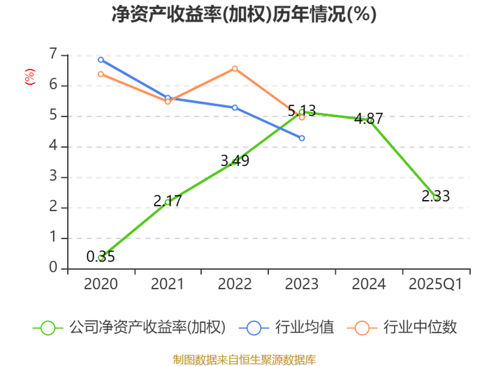 盈利能力方面, 2025年一季度公司加权平均净资产收益率为2.33%,同比上升1.09个百分点。公司2025年第一季度投入资本回报率为1.53%,较上年同期上升0.44个百分点。