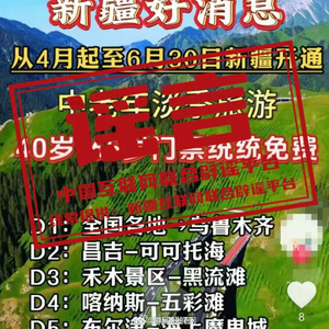 近日,内容为“从4月起至6月30日新疆各大5A级景区门票统统免费”的信息在多个新媒体平台流传,引发网民关注。