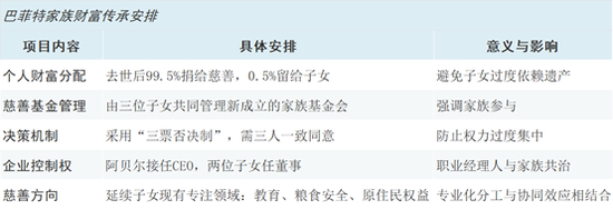 2024年7月,巴菲特宣布重大遗嘱修改,计划在自己去世后停止向盖茨基金会的捐赠,改由三个子女共同管理约1280亿美元的个人财富用于慈善事业。这一决定标志着巴菲特慈善战略的重大转向,也反映出他对子女管理能力的信任。巴菲特的三个子女——苏茜、霍华德和彼得——各自在慈善领域建树颇丰,分别专注于幼儿教育、粮食安全和原住民权益等事业。新成立的巴菲特家族慈善基金将采用“三票否决制”,任何资金使用决策需三人一致同意,这种机制旨在确保慈善资金的长期稳定运作。