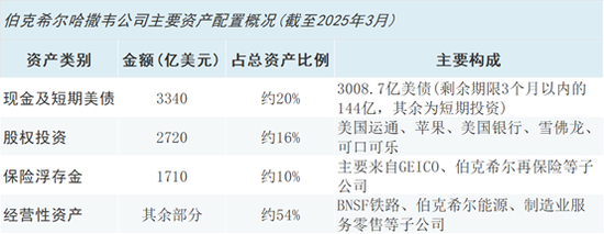 保守的现金管理:伯克希尔目前的资产配置最引人注目的特点是其庞大的现金储备及近乎极端的保守配置。截至2025年3月底,公司现金储备达到创纪录的3340亿美元,其中超过90%(3008.7亿美元)投资于短期美国国库券,这一规模相当于整个美国国库券市场(6.15万亿美元)的4.89%。这意味着市场上流通的每20美元国库券中,就有1美元属于伯克希尔,其持仓甚至超过了美联储(1950亿美元)。这种配置凸显出巴菲特在股票估值高企和全球经济持续不确定的情况下对安全性和流动性的极端重视。