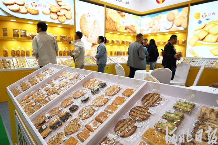 4月25日,观众在第三届河北(宁晋)食品产业博览会上参观。