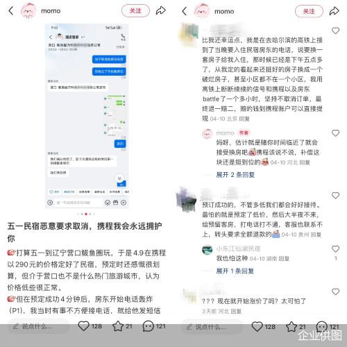 这一经历也引起了网友共鸣,该条帖子的评论区不仅有对节假日住宿乱象的讨论,也让旅游平台的服务保障机制成为焦点。