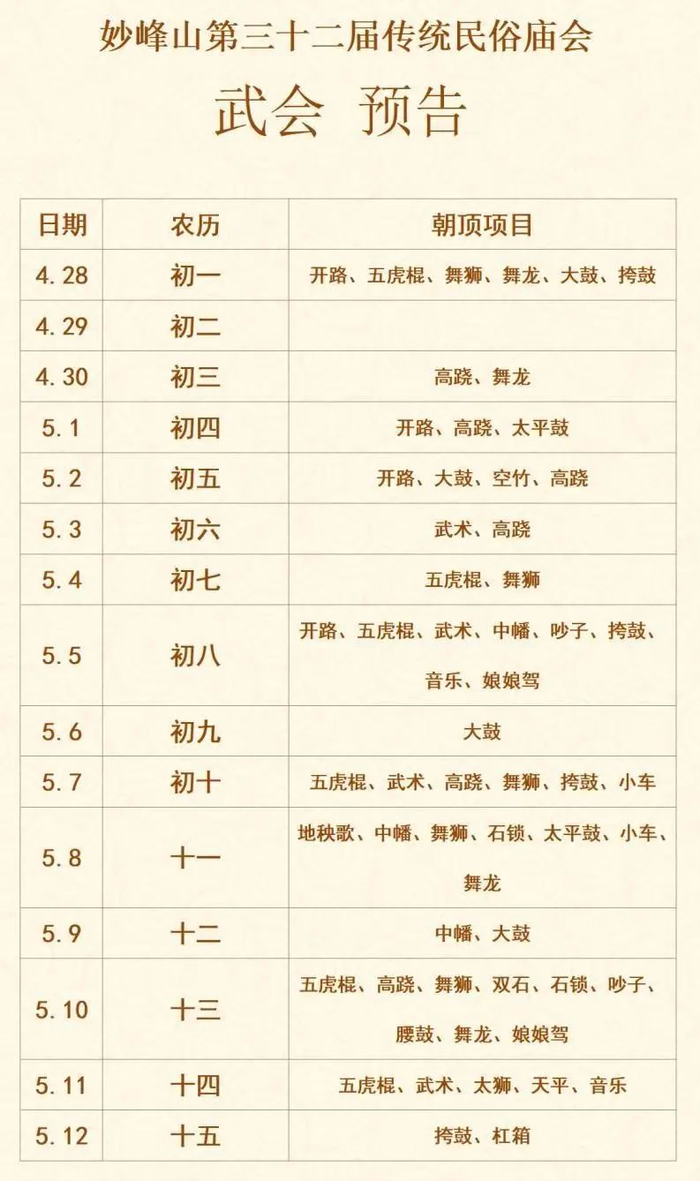 妙峰山第三十二届传统民俗庙会将于4月28日(农历四月初一)拉开帷幕,此次活动为期半个月,将有近百档传统民间花会朝顶进香。