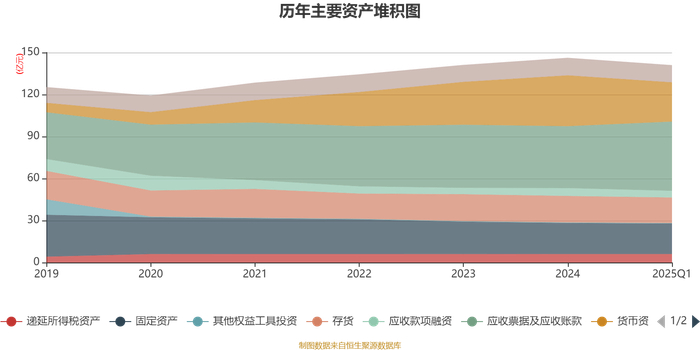 资产重大变化方面,截至2025年一季度末,公司货币资金较上年末减少22.9%,占公司总资产比重下降4.98个百分点;应收票据及应收账款较上年末增加11.79%,占公司总资产比重上升4.82个百分点;应收款项融资较上年末减少14.72%,占公司总资产比重下降0.44个百分点;固定资产较上年末减少1.85%,占公司总资产比重上升0.27个百分点。