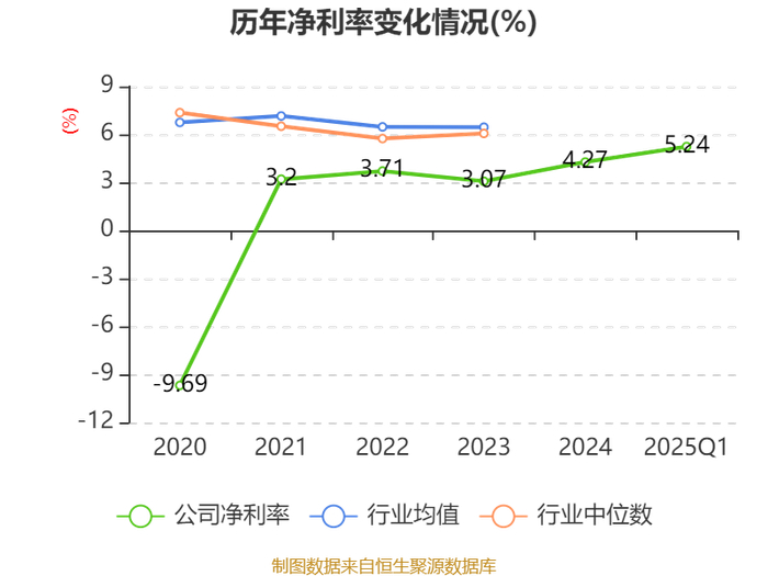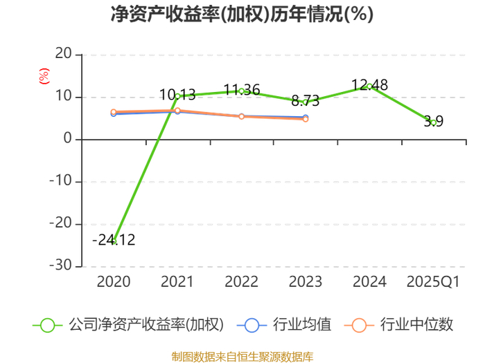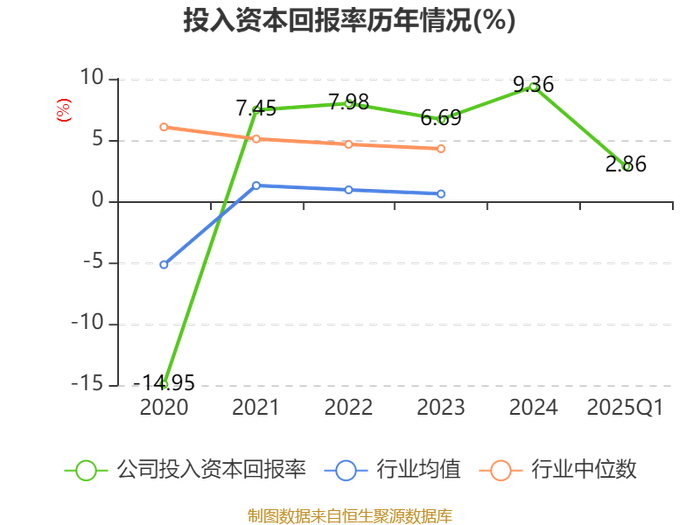 盈利能力方面, 2025年一季度公司加权平均净资产收益率为3.9%,同比上升0.23个百分点。公司2025年第一季度投入资本回报率为2.86%,较上年同期上升0.3个百分点。