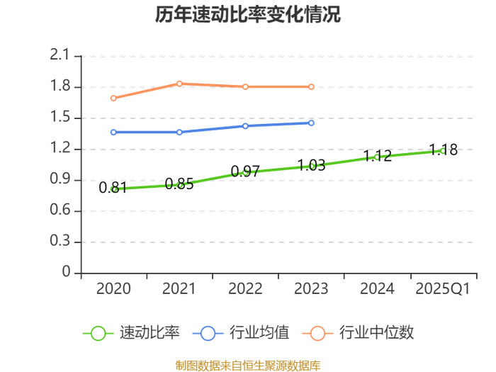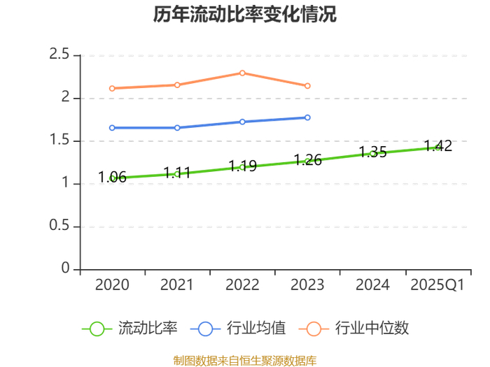 2025年第一季度,公司流动比率为1.42,速动比率为1.18。