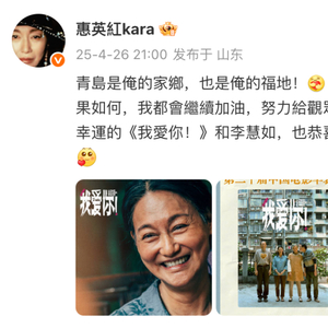 据了解,惠英红在香港出生、生活,但因其祖籍为山东青岛,因此一直对青岛存有特殊的感情。不少来自山东的网友在评论区留言称,希望惠英红“常回家看看”。