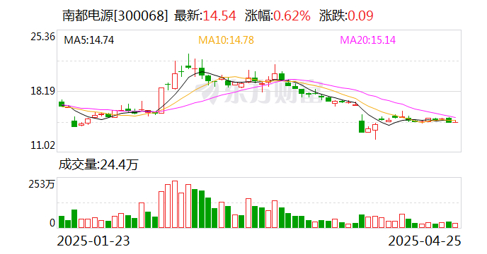 4月26日,南都电源(300068)公布2025年一季报,公司营业收入为11.4亿元,同比下降61.8%;归母净利润亏损2.66亿元,同比下降422.5%;扣非归母净利润亏损2.68亿元,同比下降884.8%;经营现金流净额为-2.95亿元,同比下降35.6%;EPS(全面摊薄)为-0.2966元。