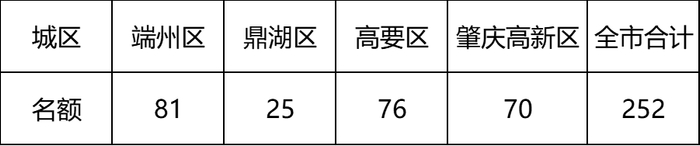 广东肇庆中学大旺实验学校(不含自主招生),面向各城区招生252人,具体名额分配如下: