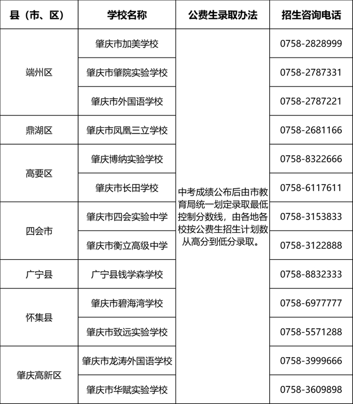 附件3.肇庆市2025年民办普通高中公费生录取办法和咨询联系方式