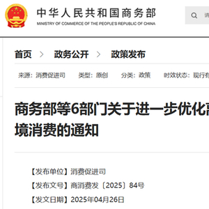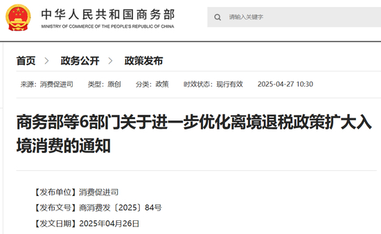 商务部等6部门关于进一步优化离境退税政策扩大入境消费的通知