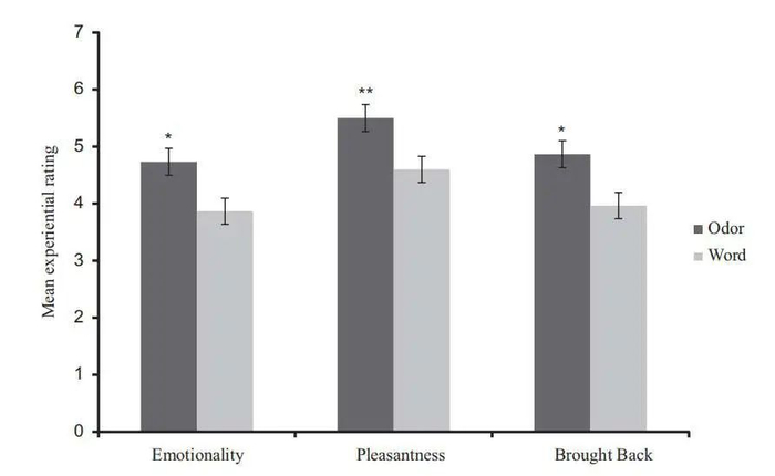 瑞典卡罗林斯卡医学院临床神经科学系研究员Artin Arshamian 博士通过对比实验也证明了这一观点,实验发现,气味比文字更容易唤起人的记忆,而且回忆的情绪强度、愉悦感和“仿佛重回当时场景”的代入感评分都明显更高。