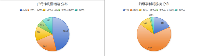 归母净利润增速方面,934家公司实现双位数增长,396家公司实现超50%增长,223家公司实现超100%增长;归母净利润规模方面,365家公司超10亿元,104家公司超50亿元,66家公司超100亿元。