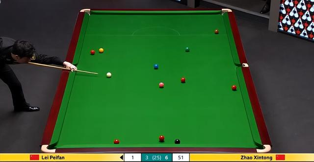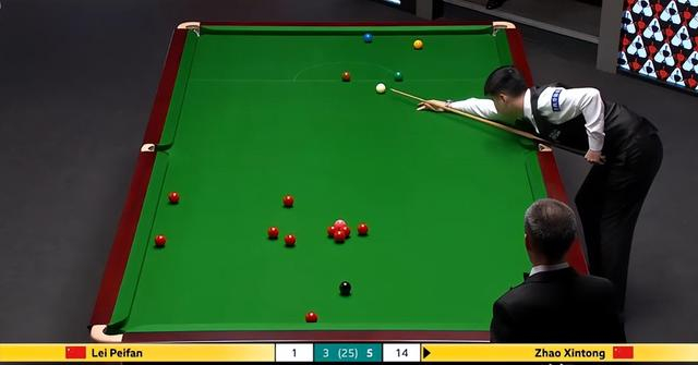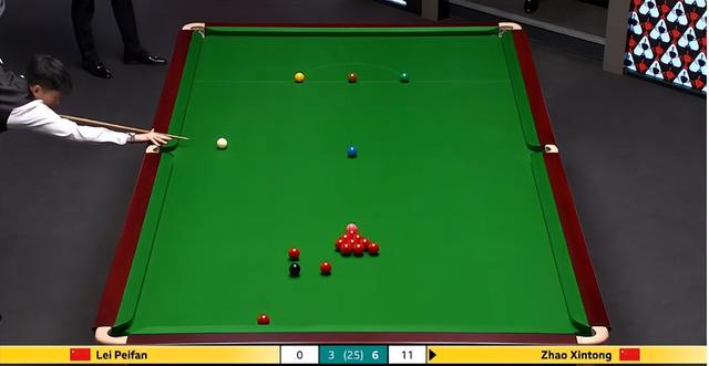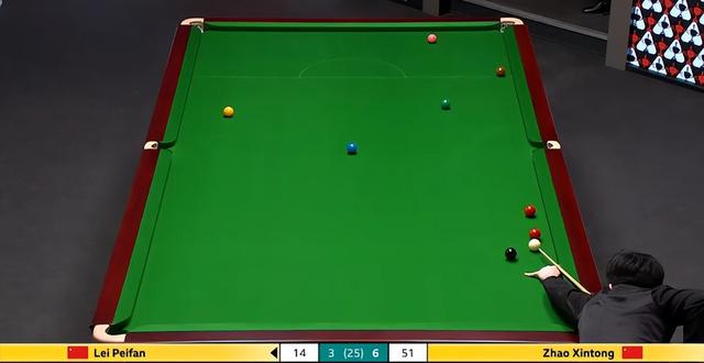 赵心童抓住这一难得的契机,果断上手,展开凌厉的攻势。他的击球如同精准的制导导弹,一颗接一颗地命中目标,很快就将比分改写为 69 分。就在观众们以为他将一杆制胜时,意外再次发生,赵心童在处理左侧库边下方的红球时出现失误,进攻被迫中断。此时,雷佩凡试图抓住这最后的机会,通过进攻与防守相结合的策略,扭转局势。但可惜的是,他在进攻过程中未能成功打进第二颗红球,反而给赵心童留下了再次进攻的机会。赵心童没有再给对手任何机会,稳稳地拿下这一局,将比分扩大到 6 - 3。