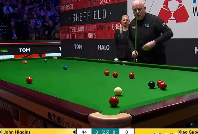 面对左侧底袋的红球,希金斯毫不犹豫地选择强行进攻,尽管这一杆未能命中,但他巧妙地防守,没有给肖国栋留下任何可乘之机。随后的防守大战中,希金斯再次展现出他的长台绝技,左下方底袋的红球在他的精准击球下顺利落袋。他乘胜追击,继续进攻,将比分扩大到 44 分后,选择转为防守,试图打乱肖国栋的节奏。在经过又一轮紧张的防守较量后,希金斯再次获得了一个绝佳的上手机会。这一次,他没有再给肖国栋任何机会,凭借着出色的发挥,成功完成超分,将比分扳平为 9 - 9。