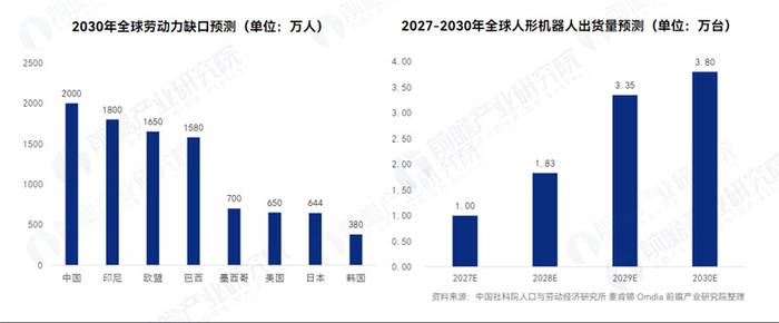 劳动力缺口将成为影响全球经济发展的关键因素之一,而人形机器人的出现,将有望缓解这一局面,未来市场对人形机器人的需求将会持续上升,预计到2030年,全球人形机器人出货量将达到3.80万台。