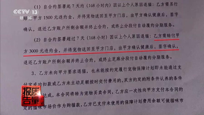 华东政法大学法学院副教授 孙维飞:在法律上,它就是一个买卖,一个是卖猫,另一个是卖猫粮,这两个买卖是捆绑的。猫粮买卖实际上是一个额度,而且必须得买到一定额度、一定年限,这个模式的特点会使得猫的价格不太透明。