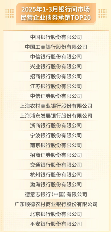 从今年一季度的银行间市场民营企业债券承销情况来看,中国银行、中国工商银行和中信银行分列1-3月银行间市场民营企业债券承销前三位,在细分来看,当季承销家数排名前三位为中信银行、兴业银行和招商银行。