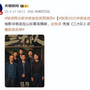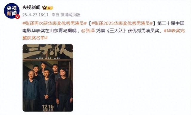 第二十届中国电影华表奖在山东青岛揭晓,张译凭借《三大队》获优秀男演员奖。