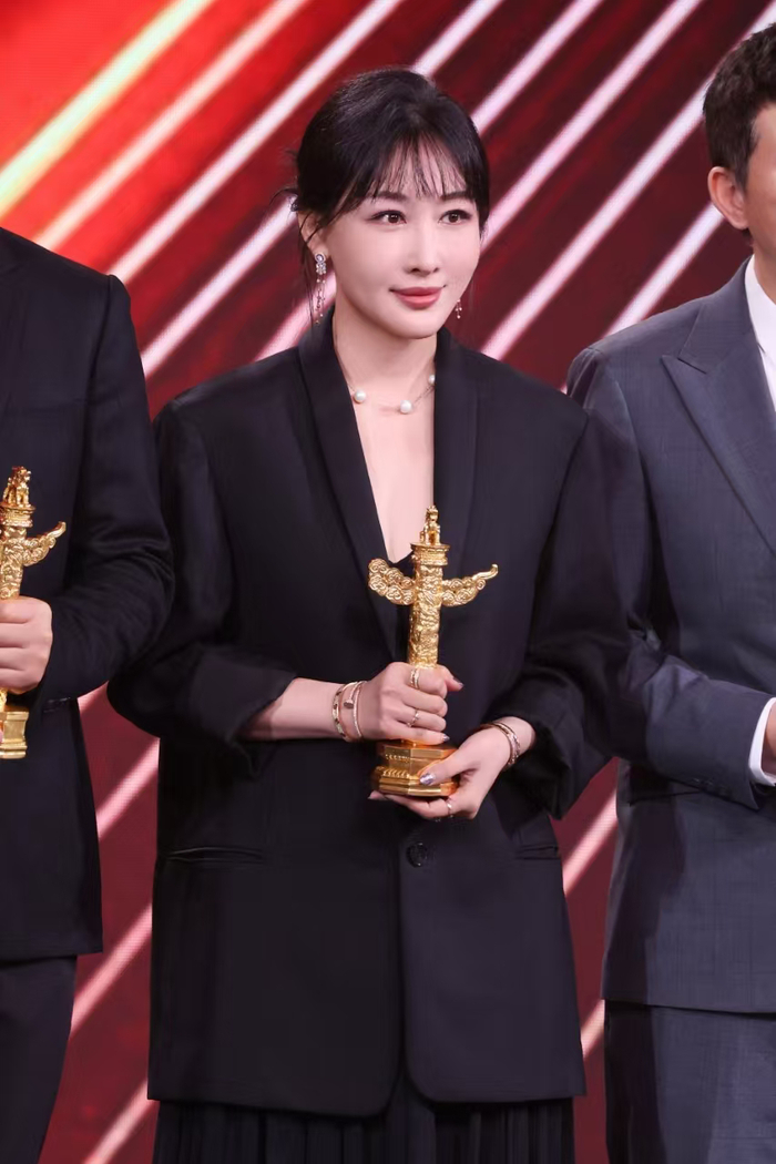 万达电影董事长兼总裁陈祉希 于颁奖现场领奖优秀故事片