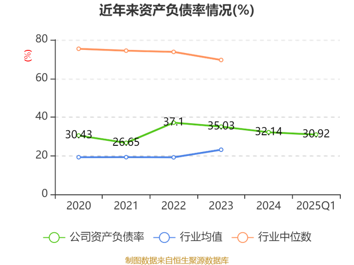负债重大变化方面,截至2025年一季度末,公司应付票据及应付账款较上年末减少37.42%,占公司总资产比重下降0.84个百分点;合同负债较上年末减少36.28%,占公司总资产比重下降0.56个百分点;其他应付款(含利息和股利)较上年末减少0.19%,占公司总资产比重上升0.43个百分点;应付职工薪酬较上年末减少80.49%,占公司总资产比重下降0.17个百分点。