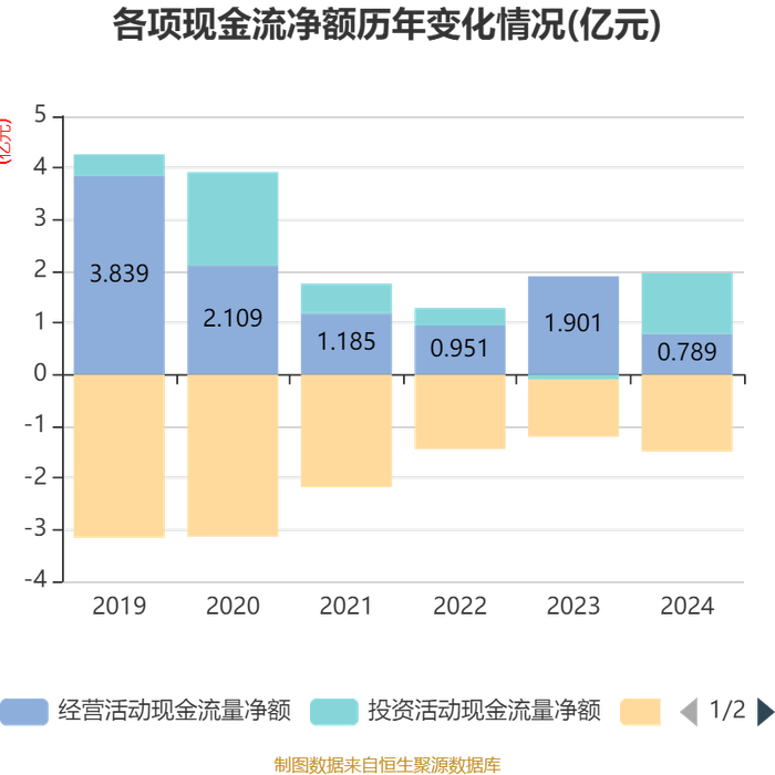 截至2024年,公司经营活动现金流净额为7893.91万元,同比下降58.47%;筹资活动现金流净额-1.49亿元,同比减少3807.29万元;投资活动现金流净额1.17亿元,上年同期为-948.31万元。