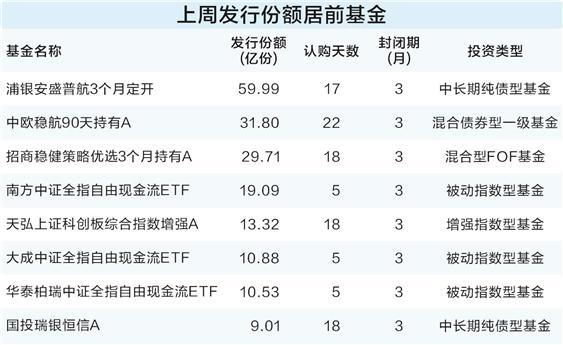 在权益市场震荡加剧的背景下,投资者风险偏好显著下沉,固收类产品成为“资金蓄水池”。数据显示,上周新基金发行份额均值为8.78亿份,首尾差异悬殊。浦银安盛普航3个月定开以59.99亿份规模拔得头筹,该产品为中长期纯债型基金,紧随其后的中欧稳航90天持有A(31.80亿份)、招商稳健策略优选3个月持有A(29.71亿份)分别为混合债券型一级基金和混合型FOF基金,显示“固收+”及FOF产品在资产配置中的吸引力。