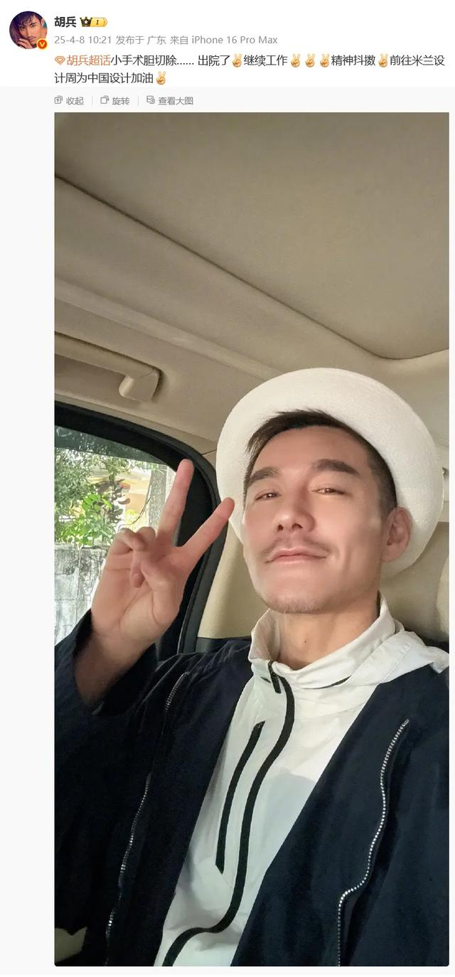 2025年4月8日,男星胡兵透露做完胆切除手术已出院,继续开始工作,引发关注。