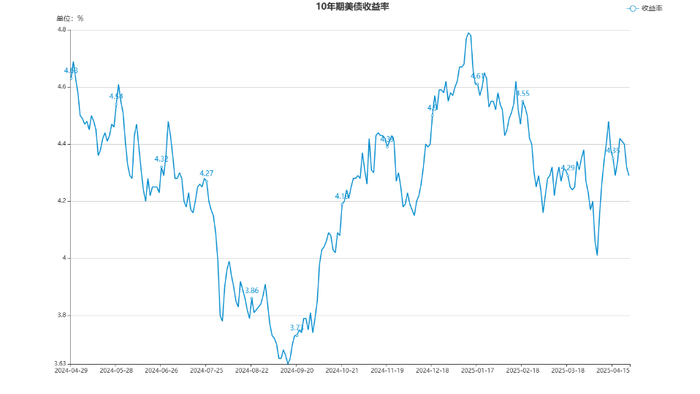 上周一,投资者对关税和特朗普总统批评美联储主席鲍威尔的言论感到担忧,市场纷纷抛售长期美债,日益紧张的局势也波及到其他市场,股市亦遭到抛售,美元汇率达到三年来的最高水平,与此同时,金价飙升至每盎司3400美元以上的创纪录高位;10年期美债收益率上升8BPs至4.409%,2年期美债收益率下跌3BPs至3.764%;周二,白宫对美联储态度软化,投资者关注最新的贸易消息,股市反弹,债市波动暂缓,10年期美债收益率变化不大;周三,在美国总统特朗普收回有关解雇美联储主席鲍威尔的言论后,中期债券收益率上涨,10年期美债收益率下跌1BP至4.40%;周四,投资者继续权衡全球贸易领域的最新进展,10年期美债收益率连续三日下跌;周五,部分美联储官员在受访时表示,认为没有必要调整货币政策。投资者继续买入美债,多数美债收益率下滑,其中2年期美债收益率跌3BPs至3.74%,10年期美债收益率跌3BPs至4.29%,30年期美债收益率跌3BPs至4.74%。从全周来看,2年期美债收益率跌7BPs;10年期美债收益率跌5BPs,最高触及4.42%,最低为4.25%,比上月跌10BPs,比去年同期跌40.9BPs。