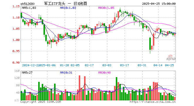4月25日军工ETF龙头(512680)份额增加240.00万份,最新份额35.24亿份,最新规模36.05亿元
