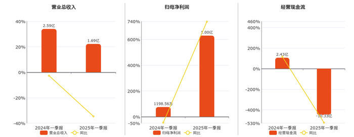 公司营业总收入为1.69亿元。归母净利润为1.00亿元,较去年同报告期归母净利润增加8836.79万元,同比较去年同期上涨737.29%。经营活动现金净流入为-10.33亿元。