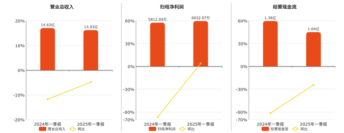公司营业总收入为13.93亿元,在已披露的同业公司中排名第5。归母净利润为6032.97万元,在已披露的同业公司中排名第17,较去年同报告期归母净利润增加220.89万元,同比较去年同期上涨3.80%。经营活动现金净流入为1.04亿元,在已披露的同业公司中排名第9。