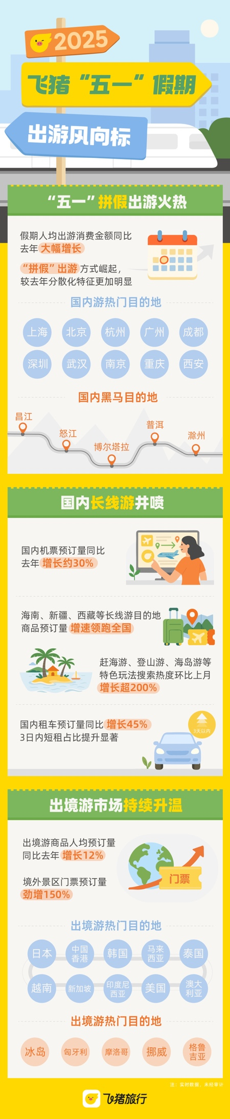 今年“五一”,消费者日益倾向通过一次性“打包”旅游产品来简化行前准备。飞猪数据显示,过去一个月,在飞猪上使用过机酒联订优惠的交易用户数同比去年增长超120%。