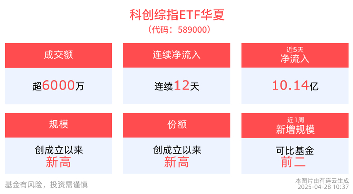 科技产业具备长期趋势,科创综指ETF华夏(589000)连续12天净流入,规模居同类首位