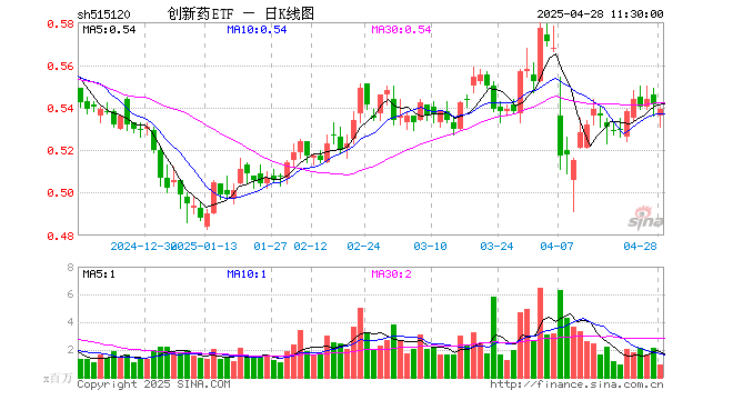 4月28日,截止午间收盘,创新药ETF(515120)跌0.37%,报0.539元,成交额4863.64万元。创新药ETF(515120)重仓股方面,药明康德截止午盘涨0.00%,恒瑞医药跌0.72%,科伦药业涨0.36%,华东医药跌0.88%,复星医药跌0.12%,长春高新跌0.50%,智飞生物跌2.97%,百济神州涨3.75%,康龙化成涨0.09%,泰格医药跌1.98%。