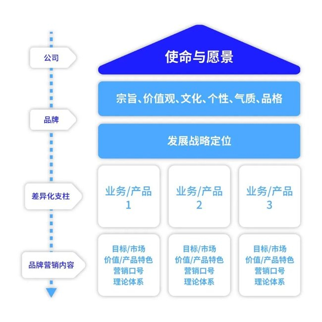 企业在构建品牌战略时,需要基于品牌系统界面,定义发展主线与逻辑,明确企业的愿景和目标,进而自上而下地逐层分解,并在执行过程中坚持去实现,形成品牌格局。