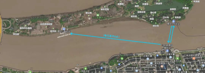 每日第1个班次(上午8:00)为西码头线路(江心屿南码头?江心屿西码头),后续班次恢复为东码头线路(江心屿南码头?江心屿东码头)