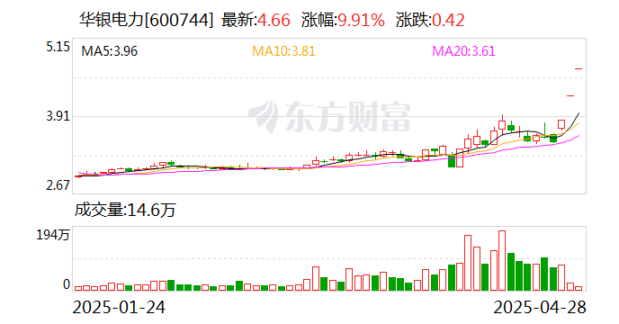 电力板块表现活跃 华银电力3连板 上海 2025.04.2809:42 关注 上证报中国证券网讯 4月28日,电力板块表现活跃,截至9时33分,华银电力3连板,华电辽能2连板,华电能源、三峡水利涨超8%。