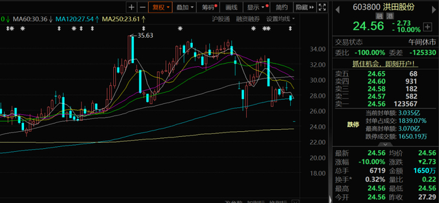 洪田股份则公告,公司及公司董事舒志高分别收到中国证监会下发的《立案告知书》,确认前述两者均被中国证监会予以立案。早间洪田股份也开盘20cm一字跌停。