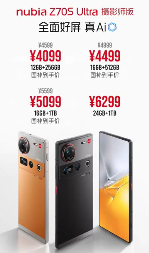 IT之家 4 月 28 日消息,努比亚今日发布了Z70S Ultra 摄影师版手机,售价 4599 元起,国补后 4099 元起。