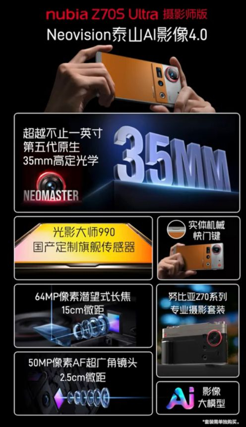 努比亚 Z70S Ultra 摄影师版手机发布:国产定制主摄、可外接镜头