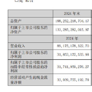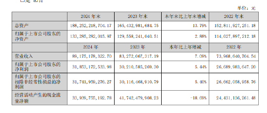 财报显示,公司营业收入为891.8亿元,同比上升7.09%;归母净利润为318.53亿元,同比上升5.44%;扣非归母净利润为317.4亿元,同比上升5.40%;经营现金流净额为339.39亿元,同比下降18.69%。