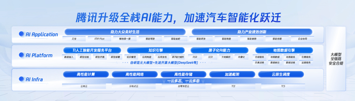 4月22日,在上海车展开幕前夕,腾讯宣布面向汽车行业升级全栈AI能力,涵盖AI基础设施(AI Infra)、AI开发与应用平台(AI Platform)及AI场景化应用(AI Application),帮助汽车行业实现模型开发、模型部署及模型应用。