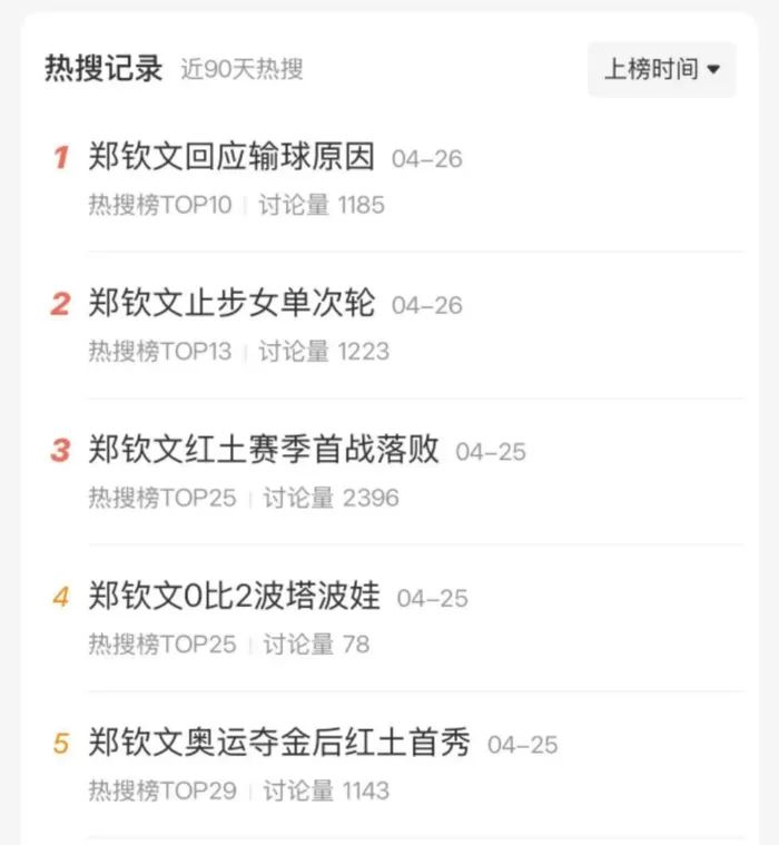 即便马德里赛非大满贯赛事,郑钦文出战的也只是浅轮次比赛,广大球迷依然给予了这场比赛超高关注。比赛结束后相关词条迅速冲上热搜,#郑钦文回应输球原因#词条最高登上了热搜榜第10位。