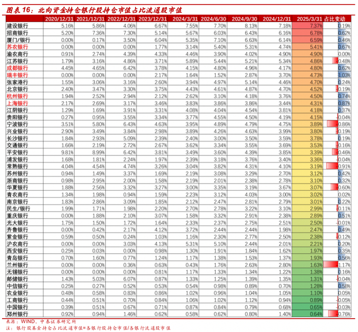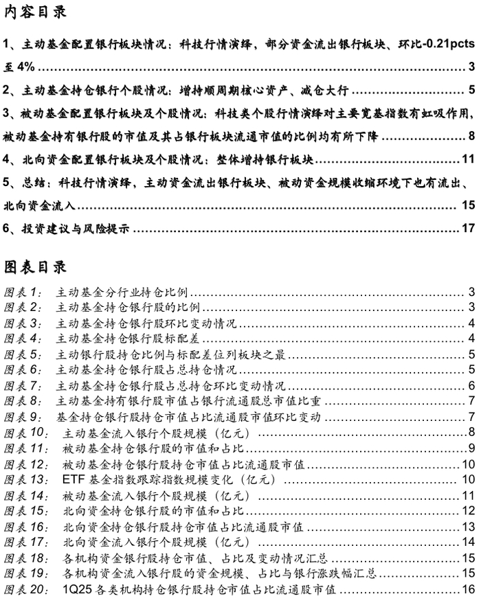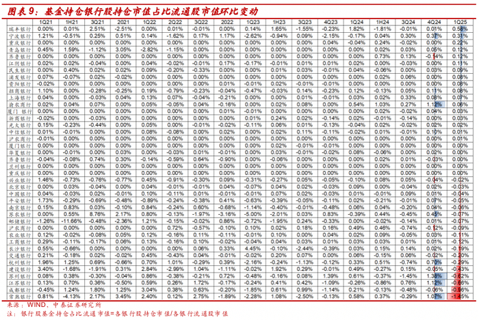 证券研究报告:详解基金1Q25银行持仓:主动资金小幅减持、北向资金增持